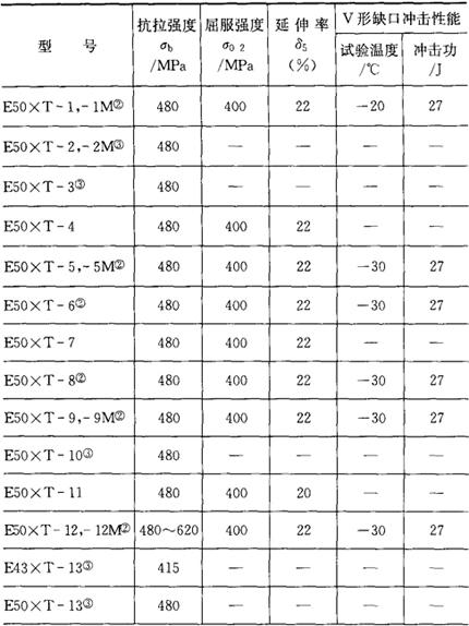 表2.2-12 低合金钢药芯焊丝熔敷金属力学性能