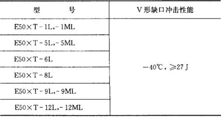 注:①表中所列单个值均为最小值。 ②型号带有字母“L”的焊丝,其熔敷金属冲击性能应满足下表要求: