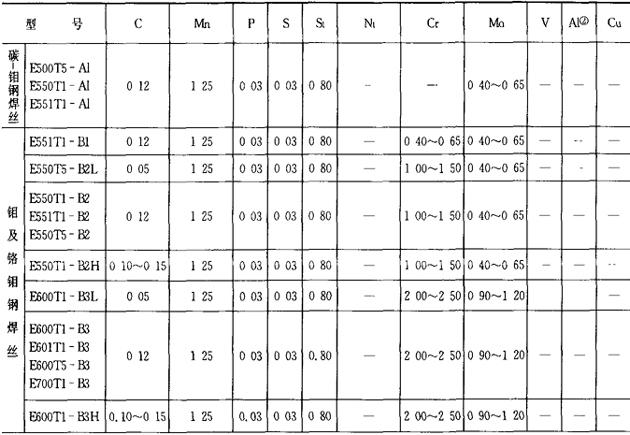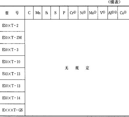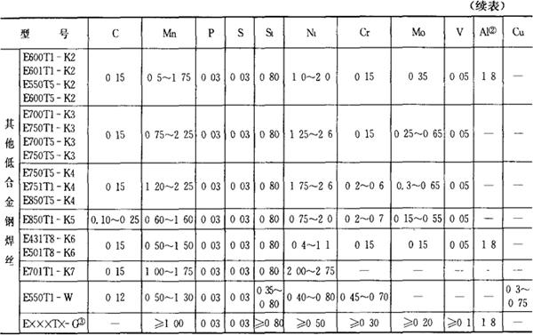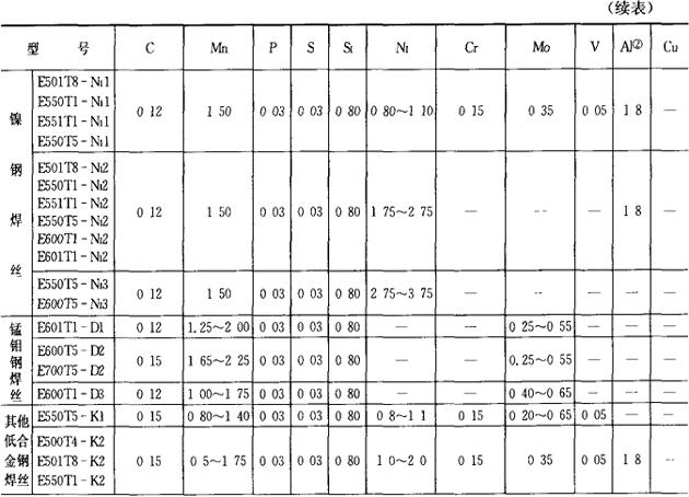 表2.2-10 低合金钢药芯焊丝熔敷金属化学成分①