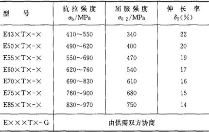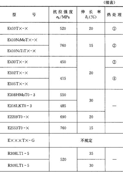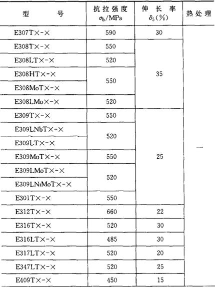 注:1表中单个值均为最大值。 2.除表中所列元素外,其他元素(Fe除外)总量不得超过0.50%。 不锈钢药芯焊丝熔敷金属的力学性能见表2.2-15。 表2.2-15 不锈钢药芯焊丝熔敷金属力学性能