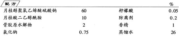 将除香精外其余各组分混合,加热至60℃,冷却至30℃后,加入香精,混合均匀,即成营养泡沫浴液。