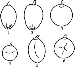 | 释义 | 葡萄裂果病 (1)裂果病发生的原因 葡萄裂果病的发生与品种的特性有直接关系。很多早熟葡萄品种伴有易裂果的特点。但与植株的生长势、负载量、土壤质地和水分供应以及授粉受精情况都有着密切的关系。通常刚开始结果的幼树,一般很少裂果;健壮而负载量适宜的结果树裂果较轻;树势较弱,负载量大的结果树裂果就重。沙质土或有机质丰富,疏松肥沃的土壤,裂果较轻;黏重土壤和易积水的地块裂果重,坐果后降雨量少,裂果轻;降雨量多,裂果重;久旱骤雨和连续大雨,更易造成严重裂果。在温室或塑料大棚内种植,裂果一般较轻,但并不能杜绝裂果,并且发生裂果的果粒(尤其是乍娜)为授粉受精不良的果实,并且裂果的部位在缺少种子的一面。对不裂果的品种,当授粉受精不良时,也会发生裂果。葡萄感染白粉病后,也易发生裂果病。 (2)裂果的症状 裂果的症状和部位因品种的不同而异。各种裂果症状见图47。