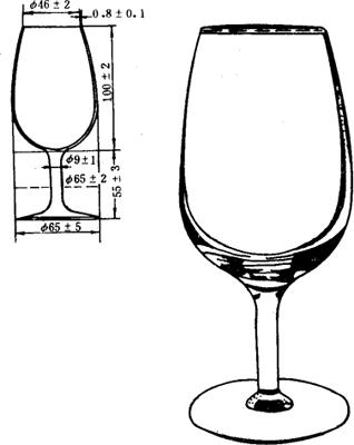 图7-2-3 标准品尝杯 三、感官分析的注意事项 1.感官分析酒样顺序 葡萄酒的感官分析排列顺序是否合适直接关系到品尝结果。一般来讲,应先白后红,先干后甜,先淡后浓,先新后老,先低度后高度。每轮品酒的数量不超过5个酒样,一天内品尝数量不可超过30个。每轮酒品完后,隔5~10min后再上第二轮酒样,这样可使品酒员感觉器官得到适当休息,得出正确的品酒结论。 2.酒温 品尝不同的葡萄酒,对酒温的要求也不同。品尝葡萄酒酒温要高些,过低会使单宁感加强。红葡萄酒在不同温度下对感官的反应为:15℃时单宁有强烈感,18℃时适中,22℃时有较烈的酒精感。一般要求见表7-2-6所示。
