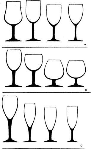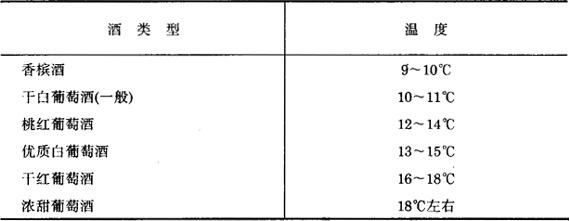 图7-2-4 各种品尝杯 表7-2-6 几种葡萄酒品尝的温度范围