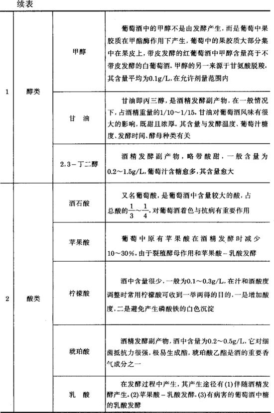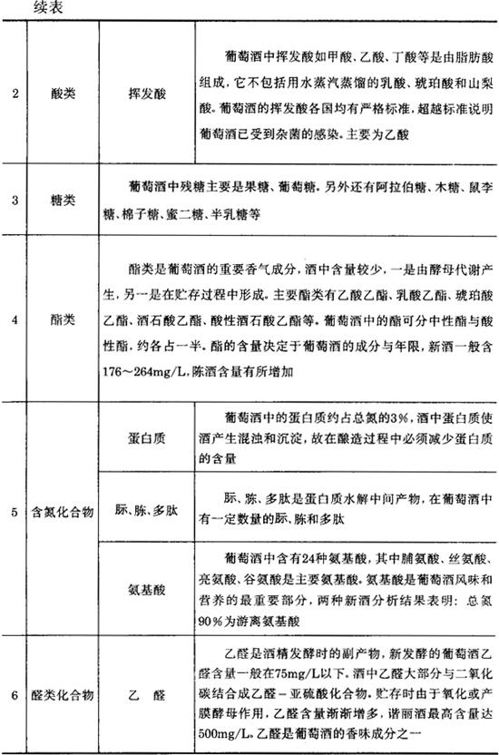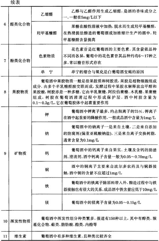 3.葡萄酒成分 表7-1-1 葡萄酒主要成分