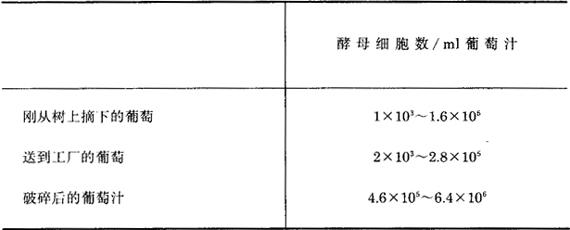 一、酵母的来源 成熟的葡萄破碎后不必接种人工培养酵母,不久就会自己发酵起来,这些自然引起发酵的酵母是来自葡萄和空气。 研究表明,葡萄酒酿造时酵母菌主要来自葡萄本身。成熟的葡萄果有一层蜡质似的鳞状物覆盖在果皮上,它是酵母等微生物的依附场所,也起着保护果实内部不受侵染的作用。附在成熟葡萄上的酵母随着葡萄的采摘被运送到葡萄酒厂,葡萄园中残留下来(葡萄树、次落果等上)的酵母多数渐渐衰老死亡,一部分则以细胞或孢子的形式进入土壤上层越冬,第二年夏天葡萄生长时,土壤中的酵母有一部分随尘土飘落到葡萄上,大部分是在葡萄快成熟前,借助昆虫(蠓虫等)不断地串访葡萄穗而转运到葡萄上。随成熟葡萄运送到工厂的酵母被带到破碎、除梗机,果汁分离机,压榨机,发酵罐,贮酒容器,输送管道等设备中,并扩散到葡萄酒厂的各处,尤其是经常接触葡萄和葡萄汁、空气的设备,都是葡萄带来的酵母的栖息和繁殖场所,也是葡萄酒酿造时酵母菌的来源之一。 由此可见,从树上摘下成熟的葡萄,运至工厂,直至破碎、压榨成葡萄汁,其酵母数是不断增加的(见表2-1-4)。 表2-1-4 葡萄收摘后酵母细胞数的变化