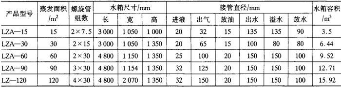 图4-13-11 立式螺旋管式蒸发器 表4-13-8 立式螺旋管式蒸发器主要技术参数