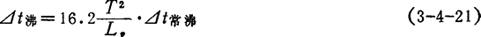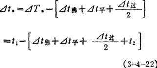 式中 ⊿t沸——料液的沸点升高(℃) ⊿t常沸——料液在常压下的沸点升高(℃) T——某压力下水的沸点(℃) Lv——某压力下水的汽化潜热(J/kg) ⊿t常沸可由手册中查取,或实验测定。饱和NaC1溶液与25%浓度的溶液的⊿t常沸分别为108.8,107.4℃。 盐卤的沸点升还可由图3-4-48中查取。