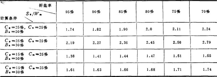 表3-4-42 不同的析盐率时进卤量与蒸发量之比Sn/Wn