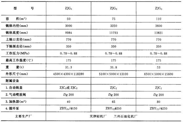 图6-3-1 国产碱法蒸煮锅 表6-3-3 国产碱法蒸煮锅的规格尺寸