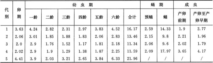 3.5 棉铃虫不同温度下的各虫态历期(天)
