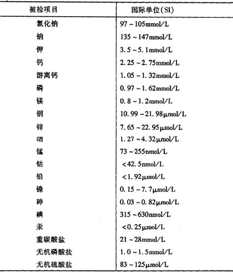 血液电解质及其无机物检测项目与数值