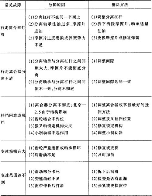 表9-8 行走部分常见故障分析及排除方法