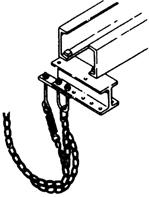 (b)弹簧和补偿链 图25.5-3 典型的补偿链固定示意 (1)检查补偿链是否有生锈发生。 (2)检查补偿链是否有磨损。 (3)检查补偿链距离底坑地面的距离是否符合标准。 (4)检查补偿链固定是否牢固,螺栓是否紧固。 (5)检查补偿链固定处是否有二次保护。 |