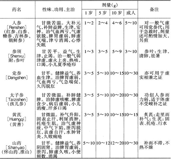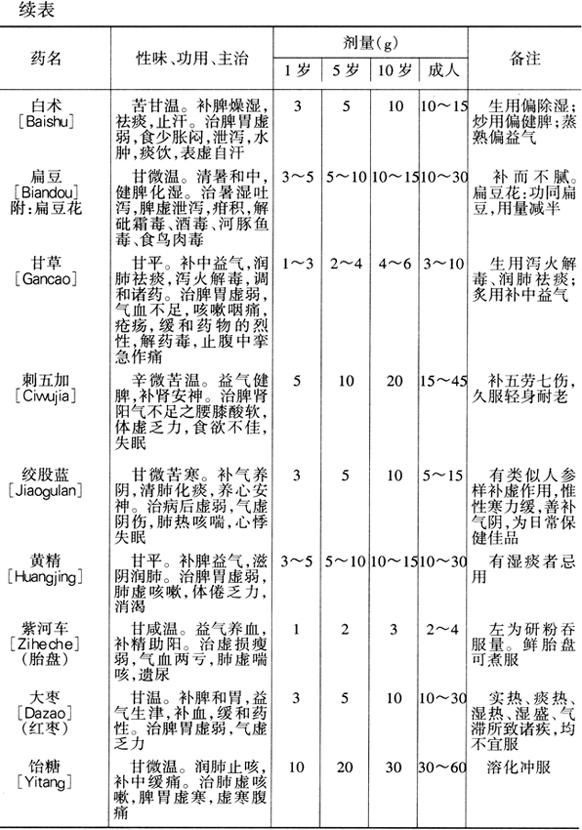 | 释义 | 补益药 凡能补益人体气、血、阴、阳之不足,改善脏腑功能,增强体质,提高抗病能力,以治疗各种虚证的药物称为补益药,又称补虚药。 现代药理研究表明,本类药的主要药理作用有:①能增强机体各种免疫功能,有些药对免疫功能有双向调节作用。②能增强机体对各种有害刺激的抵抗能力,使过度亢进或低下的病理反应恢复正常。③调节和促进糖类、蛋白质、脂质和核酸等物质代谢和能量代谢。④能加强大脑皮质的兴奋和抑制过程,提高学习和记忆功能。⑤调节内分泌系统功能,改善内分泌功能低下,如促进垂体分泌ACTH,兴奋垂体分泌促性腺激素,使甲状腺激素合成及分泌增多,某些药尚有雄性激素样作用或糖皮质激素样作用。⑥有些药具有增强心肌收缩力、扩张血管、降压或收缩血管升压、抗心肌缺血及抗心律失常等作用。⑦增强骨髓造血功能,减轻辐射对造血的损害作用。⑧延缓衰老。中医学认为,对实邪未尽的患儿,应予慎用补益药,以免病邪留滞;邪实正虚者,亦可在祛邪的基础上酌加补益药,以扶正祛邪。对久病沉疴,初有起色,胃气初复,虚不受补者,应先开胃和中,兼以清淡平补之品缓缓调理,切忌大量峻补。本类药味厚者居多,宜文火久煎,若需久服,可制成丸剂、膏剂服用。 (一)补气药 又称益气药。性味多甘温,能治疗气虚病证的药物,具有补肺气、益脾气的功效,常用于中气不足、肺气虚与脾气虚。若兼有阳虚、血虚、阴虚者,应分别配用补阳药、补血药、补阴药;气能生血,亦能生津,故在治疗血虚或阴津不足时,若配以补气药,可提高疗效;气能摄血,当补气药与止血药同用时,可治气不摄血之出血症。