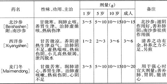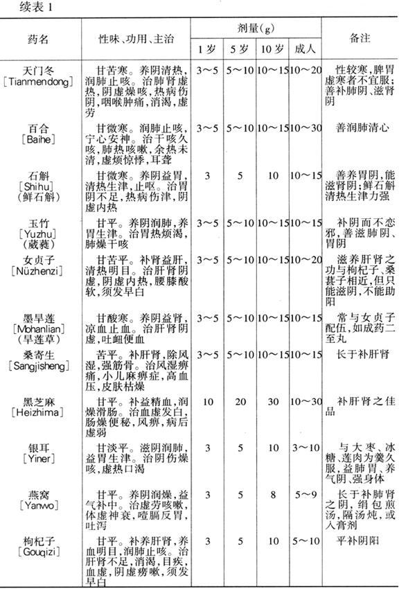 (四)补阴药 又称养阴药、滋阴药。是能治疗阴虚病证的药物。具有滋肾阴、补肺阴、养胃阴、益肝阴的作用,适用于肺胃阴虚和肝肾阴虚之证。本类药大多甘寒滋腻,对脾肾阳虚、痰湿内阻、食少便溏等不宜用。