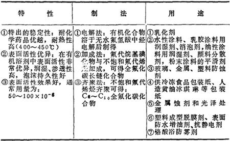 表面活性剂分类方法是按其在水溶液中能否离解或离子所带电荷的性质分类的。 4.氟代烃类表面活性剂 表面活性剂种类品种繁多,这里仅仅介绍近年来国际性开发的新型表面活性剂,即氟代烃类表面活性剂,其特性、制法和用途见表16-79。 表16-79 氟代烃类表面活性剂