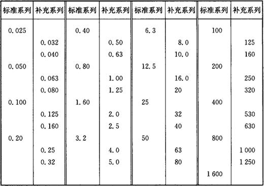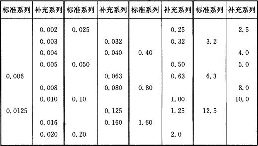 表1-28 轮廓微观不平度的平均间距Sm轮廓的单峰平均间距S的数值 (μm)