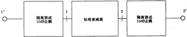 | 释义 | 衰减测量和量值传递中注意的问题 1.量值传递中的失配误差 根据衰减的定义,我们需要正确测量的被测量是由式(7.4-27)描述的量,然而由于实际测量系统中不易保证ΓG=ΓL=0的条件,因些测量结果是式(7.4-26)的插入损耗。两者之差即为失配误差。 为了减小失配误差,应使看向插入点两边,即源端和负载端的驻波比尽量小,通常在测量之前采取调配措施,并要求标准衰减器和被测衰减器输入和输出端的驻波比小。在量值传递或两套衰减测量装置的比对中,用作媒介的标准衰减器两端可接低驻波比的隔离器或10dB去耦衰减器,如图7.7-2所示。不过要注意,这时标准衰减器(即端口1-2之间)的原有定标值要用端口1’-2’之间的重新定标值代替。这样,尽管两套系统的失配情况不同,但是由于此时失配误差为一固定量,不影响量值传递或比对的结果。