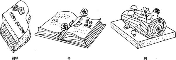 图2-5-4 常见蛋糕装饰物布局 下面探讨几种构图法的规律。 1.单线练习(图2-5-5)