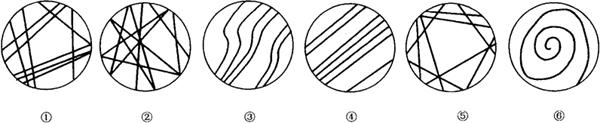 图2-5-5 单线练习 以上6个圆形的构图练习是用单线完成的,学习构图中的位置布局及对面积的分割,从而获得6种不同情绪不同语言的画面。这些图形虽然都是抽象的,但能让人联想出自然界中的许多形象和类似音乐一样的美感。 ①挺拔、宁静,②紧张、坚硬,③抒情、流畅,④方向、速度,⑤冲动、反射,⑥旋转与温柔(然而视觉效果比语言来的丰富甚至难以形容)。 用线用形的组合去表现自己的情感不是一朝一夕就能找得到的,用形体说话比用文字难得多,需要用大量的练习。将练习图保留下来,经常翻阅思考,就能找到属于你自己的艺术表现力。 在练习构图时应注意的问题: ①要大胆做画不要担心画坏,不要有负担。 ②注意画面的对比和协调关系(图2-5-6)。