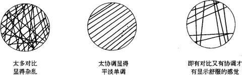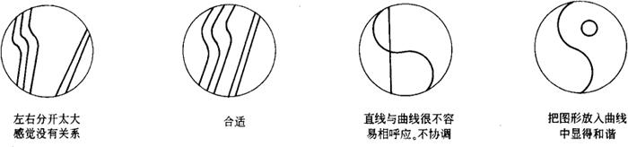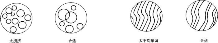 图2-5-6 图形的协调关系 ③构图要有紧有松,有密有疏(图2-5-7),画面才能有生气,避免平均使用力量。