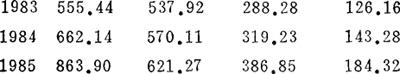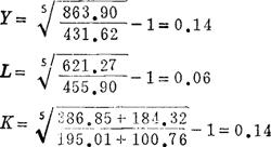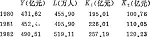 利用水平法分别计算出1980~1985年间的Y,L,K值如下:
