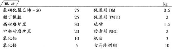 按配比将全部组分进行混炼,薄通,得到胶料。按高速窄型胶带加工工艺成型,经硫化,制成胶带。