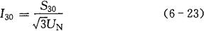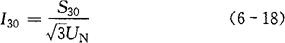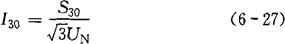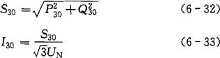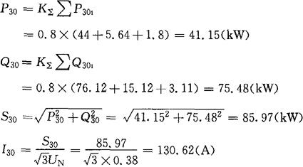 式中 Pe——等效三相设备容量(W); Peφ——接于线电压的单相设备容量(W)。 等效三相计算负荷可按前述需要系数法确定。 5.用需要系数法确定全厂的计算负荷 将全厂用电设备总容量乘以全厂负荷的需要系数即可确定全厂的计算负荷。 全厂有功、无功、视在计算负荷及计算电流 Q30=P30tanφ (6-31)