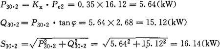 式中 P301——各组用电设备的有功计算负荷(W); Q301——各组用电设备的无功计算负荷(W)。 [例6-2] 用需要系数法计算例6-1车间的计算负荷。 [解] 金属切削机床组的计算负荷 查表1-23,取需要系数,功率因数、正切值为:Kx=0.2,cosφ=0.5,tanφ=1.73。
