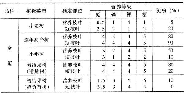 注:为21年生国光。 表5-5 苹果不同植株类型营养状况比较 (山东农业科学院实习农场,1976年)