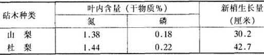 表5-7 砧木不同对八云梨养分含量的影响 (细井,1950)