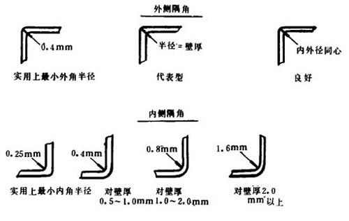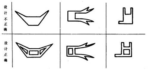 图4-6-5 中空异型的筋突出 ③隅角处应按异型材厚度用圆弧过渡,以免应力集中,见图4-6-6所示。