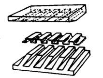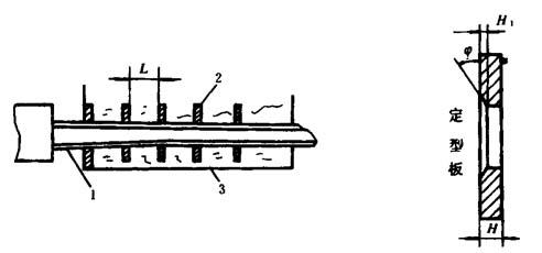 图4-6-20 板式定型冷却 1-制品 2-定型板 3-水槽 表4-6-1 定型板结构尺寸范围(mm)