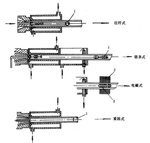 图4-6-24 浮动芯棒的定型 ④真空水槽定型 型坯通过设有定型板的真空水槽(见图4-6-25)时,由于型坯内外只有压差,所以也能得到定型与冷却效果。真空水槽的入口是型坯本身堵住的,出口则应用橡胶密封。