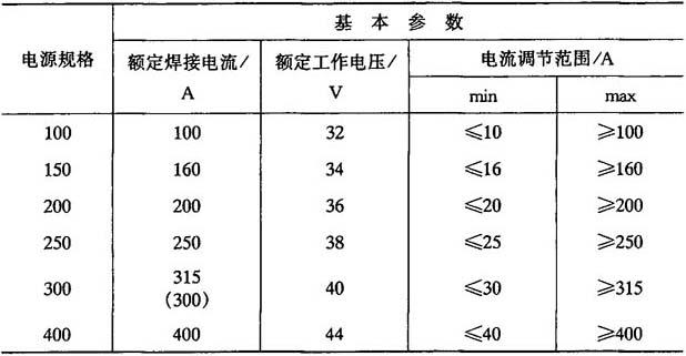 图5-40 等离子喷焊设备组成示意图 1—整流电源;2—高频振荡器;3—控制柜;4—送粉器;5—摆动器;6—喷枪;7—旋转工作台;8—喷焊机床;9—气瓶 设备组成如图5-40所示,由整流电源、高频振荡器、控制柜、喷焊机床、送粉器、摆动机构、喷枪、供水装置等部分组成. 5.6.2.2 整流电源 喷焊用的整流电源在技术性能要求上与常用的弧焊整流电源基本相同,采用的电源类型有:磁放大器硅整流电源、可控硅整流电源、可控硅逆变电源,电源规格及基本参数列于表5-14. 表5-14 电源规格及基本参数
