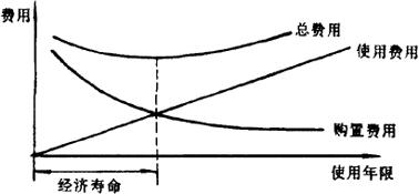 | 释义 | 设备的更新与改造 1.设备的寿命 可从不同角度理解设备的寿命 (1)设备的物质寿命(亦称设备的自然寿命) 是指设备从投入使用到报废为止所经过的时间。设备的物质寿命是根据设备的有形磨损确定的,主要取决于设备的质量、使用和维修状况。如果设备使用和维修工作做得好,则设备的物质寿命相对较长。然而,随着设备物质寿命的延长,维修费用也会提高。 (2)设备的经济寿命(亦称设备的价值寿命) 是指设备从投入使用到继续使用不经济而被淘汰所经历的时间。设备经济寿命取决于第Ⅰ种无形磨损。由于随着设备使用时间的增长,维修费用亦会增加,设备的使用成本提高,这时依靠高额的维修费用来维持设备的使用往往是不经济的,所以应淘汰旧设备,重置新设备。 确定设备的经济寿命的方法很多,比较常见的是利用费用曲线来确定。如图4.7.5-1所示,设备的购置费用曲线与使用寿命曲线组成的总费用曲线的最低点即为经济寿命最佳年限。