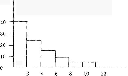 根据频数分布表,取零件更换次数为横轴,出现频数为纵轴可作出如下直方图(图1)。