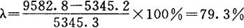 计算表明,刨床备件预测投资为5345.3元。按此制定投资预算,就可以保证备件储备的要求,这样也就可将备件占用流动资金控制在一定限度之内。为了检验这种预测方法的经济效益,可将此预测值与现行库存台帐上反映出来的备件最高储备量占用流动资金的实际值W实进行比较,从而可建立备件储备状态的经济考核指标——备件资金积压率。 设备件资金积压率为λ,则λ可由下式给出: