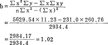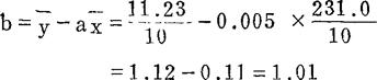 则y=0.0005x+1.02为回归方程。 或用下式求b: