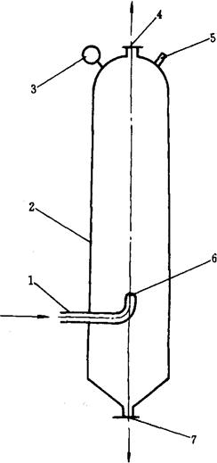 图1-14-23 真空脱臭罐 1-进料管 2-罐体 3-真空表 4-废汽出口 5-清洗水进管 6-豆奶喷嘴 7-出料口 3.6 高压均质机 通过高压将豆奶中的脂肪球等粒子进一步打碎,以提高豆奶的乳化稳定性和改善豆奶的口感。该机结构原理参见第1篇第17章第3节。 |