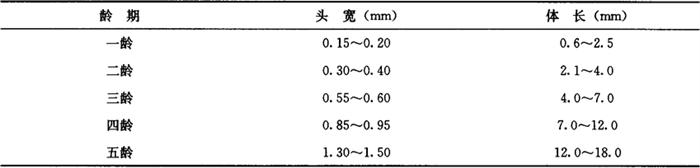 注:上海市蔬菜科学技术推广站。 3.6 豆野螟各龄幼虫的头宽与体长