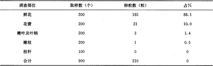 注:上海市蔬菜科学技术推广站。 3.8 豇豆豆野螟在植株上产卵部位选择