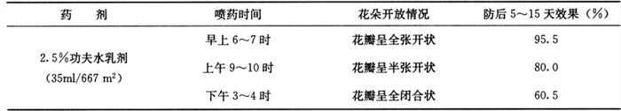 注:上海市蔬菜科学技术推广站,2004。 3.10 不同喷药时间的防效比较