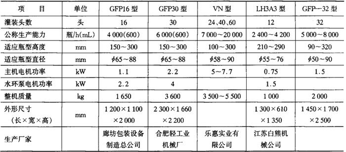 负压灌装机的主要技术参数见表4-6-3。