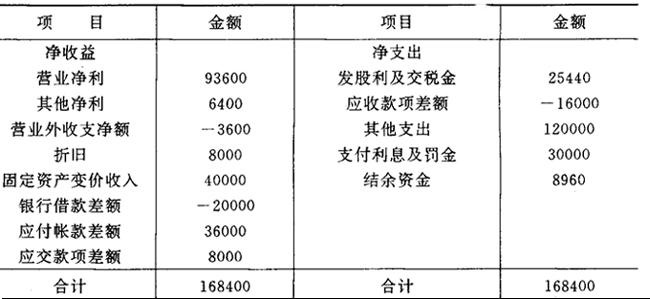 从图表3-11中可以看到,报告期比上年净经营资金减少30000元,似乎是增加了银行短期借款和应付帐款等项负债而形成的。但是流动负债的增加必然引起流动资产作等额增加,使净经营资金减少30000元的真正因素,需要由其它科目分析来确定,比如由销售收入所获得的盈利,出售闲置和积压资产,购置生产设备,归还专用基金部门的提存款项,等等。所以,有的企业采取另外一种报表形式,即“财务状况变动表”的形式。 “财务状况变动表”不像“资产负债表”也不像“净经营资金变动表”是以一定日期的资金静态加以表示的,“财务状况变动表”所反映的情况是在一定期间内主要财务收支状况的动态。比如报告期内所获得的营业净利,出售机器设备和物料的净收益,支付股东或税务部门的税金和盈利分配,盈利的留成,应收应付款的收支净额等。按照财务收支状况可以表明企业在一定期间内的主要营业业务的成果和收益净额,对于衡量企业的财务状况评价企业的财务活动是比较有说服力的资料,它不像“资产负债表”和“资金变动表”,只是反映执行的结果,其活动的内容是无法了解了。 “财务状况变动表”按财务净收益和净支出分明细项目加以表示。财务净收益主要包括,销售产品的营业净利,其它销售净利、营业外净收入,固定资产变价净收入、无需支付资金的费用——折旧,银行借款差额,应付帐款差额,应交款项差额等。财务净支出包括:分发股息及税金,应收帐款差额,发展生产的支出,支付利息及罚金等。“财务状况变动表”格式如图表3-12所示 图表3-12 简略财务状况变动表 单价:元