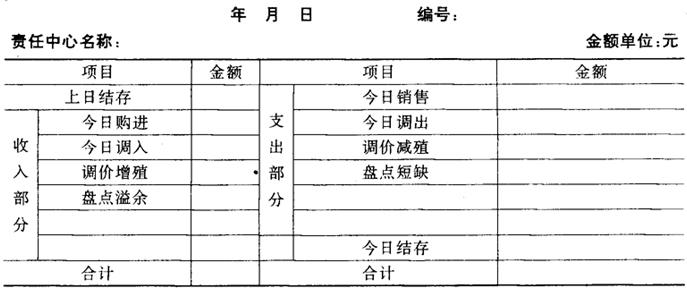 责任中心销售收入责任指标的核算,一般可利用“商品进销存报告单”进行。只要在“商品进销存报告单”上加上“累计销售额”项即可。“今日销售”项既是专业核算的“营业收入”,也是销售中心当天销售指标完成数,将当日进销存报告单中的“今日销售”加上昨日进销存报告单的“累计销售”,就是本日出“累计销售”的数额。月末“累计销售”数就是全月销售责任指标完成数。将当月实际销售收入与当月销售收入责任指标相比较,即可求出商品销售收入预算完成率。 为了对销售中心的经营品种进行监督和控制,也在“商品进销存报告单”中增设“经营品种定额”、“实在品种”、“商品齐备率”专栏。“商品进销存报告单”格式见图表5-9。 图表5-9 商品进销存日报表