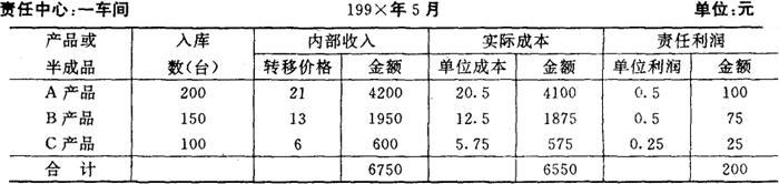 图表5-16 责任利润计算表
