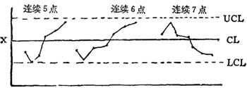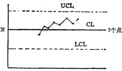 图4-4 中心线一侧连续出现七个点以上的异常现象