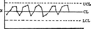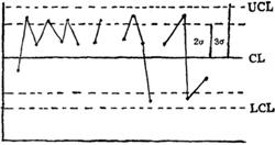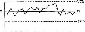 | 释义 | 质量保证体系 质量保证体系是全面质量管理的精髓和核心。其基本组成部分是:设计试制、生产制造、辅助生产和使用过程的质量管理。 1.设计试制过程的质量管理 设计质量主要体现在新产品满足用户使用要求的程度,以及与企业加工制造水平的适应状况。因此,设计试制过程的质量管理,应着重抓好以下几方面工作: (1)根据市场(或用户)调查与科技发展情报制定质量目标。 (2)保证先行开发研究工作的质量。 (3)根据方案论证,保证验证试验资料、鉴定方案论证质量。 (4)审查产品设计质量,包括性能审查,一般审查,计算审查,标准审查,设计阶段审查,可靠性审查,可制造性审查,可检验性审查,可修性审查,可换性审查,设计更改审查等。 (5)审查工艺设计质量。 (6)检查产品试制、鉴定质量。 (7)监督产品试验质量。 (8)保证设计图纸、工艺等技术文件质量。 (9)保证产品最后定型质量。 2.生产制造过程的质量管理 生产制造过程的质量管理主要应抓好以下工作: (1)加强工艺管理,严格工艺纪律,全面掌握生产制造过程的质量保证能力,使生产制造过程经常处于稳定的控制状态,并不断进行技术革新、改进工艺。为了保证工艺加工质量,还必须认真搞好文明生产,使工艺过程有一个良好的条件和环境。 (2)组织好技术检验工艺。为保证产品质量,根据技术标准,对原材料、在制品、半成品、产品以及工艺过程质量,都要进行检验,严格把关,确保不合格品不流入生产过程中的任何一个环节。 (3)掌握质量动态。质量状况的综合统计与分析,是掌握质量动态的有效工具。因此,要建立和健全质量的原始记录,合格品的转序、缴库,不合格品的返修、报废,都要有记录、有凭证,并由检验人员签证。 (4)加强不合格品的管理。 (5)实行工序质量控制。凡是关键项目、关键项次,工艺上要求高的,作为基础的,生产过程中常发生问题的地方及用户意见较集中的问题等均要建立质量控制管理点。运用质量控制图,是工序质量控制的一种最重要而有效的科学工具。 控制图的作法:以时间为中心线(CL),以质量控制为上(UCL)、下(LCL)界线,超出界线为异常现象。如果各点都在界限之内,这时还要看各点的排列情况和变化趋势。下面列举的几种情况,都应判为异常现象。如图4-4,5,6,7,8。